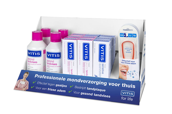 DENTAID Dentaid richt zich op het verbeteren van ieders mondgezonheid, wereldwijd! De bekende merken Vitis, Interprox, Perio•Aid en Halita zijn allemaal hoogwaardige mondverzorgingsproducten die door dentale professionals worden geadviseerd. Om ze op een professionele wijze te informeren over de producten van Dentaid hebben wij hiervoor kwalitatief hoogstaande sampledozen ontwikkeld en geproduceerd. Ook de vloer- en kassadisplays hebben een kwalitatieve uitstraling.