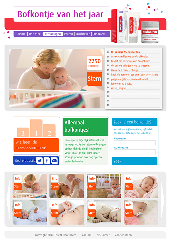 BOFKONTJE VAN HET JAAR Sudocrem is het meest verkochte middel bij luieruitslag in Nederland. En eigenlijk zijn dus alle baby's waarvan de billetjes bij luieruitslag worden verzorgd met Sudocrem 'bofkontjes'. Sinds 2010 wordt de 'bofkontje van het jaar' wedstrijd gehouden, waarbij op een speciale actie website ouders hun bofkontje kunnen aanmelden met een leuke foto. De bofkont met de meeste stemmen wint. De actie wordt aangejaagd via social media door de deelnemers zelf.