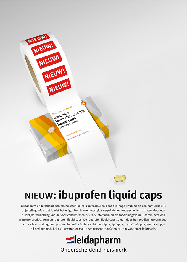 LEIDAPHARM CAMPAGNE Leidapharm is een grote Nederlandse producent van zelfzorgproducten. Zij onderscheiden zich door een hoge kwaliteit en een aantrekkelijke prijsstelling. De combinatie van deze kenmerken waren leidend in de ontwikkeling van een nieuw verpakkingsontwerp. In de communicatie naar de detailhandel is de aantrekkelijke prijsstelling 'doorgetrokken'. De diversiteit aan kleuren in de nieuwe verpakkingen wordt op een functionele manier gebruikt in zowel foldermateriaal als op internet.